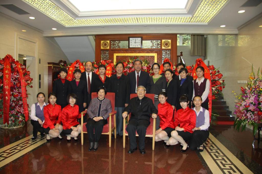 我系实习生和朱镕基总理夫妇合影留念