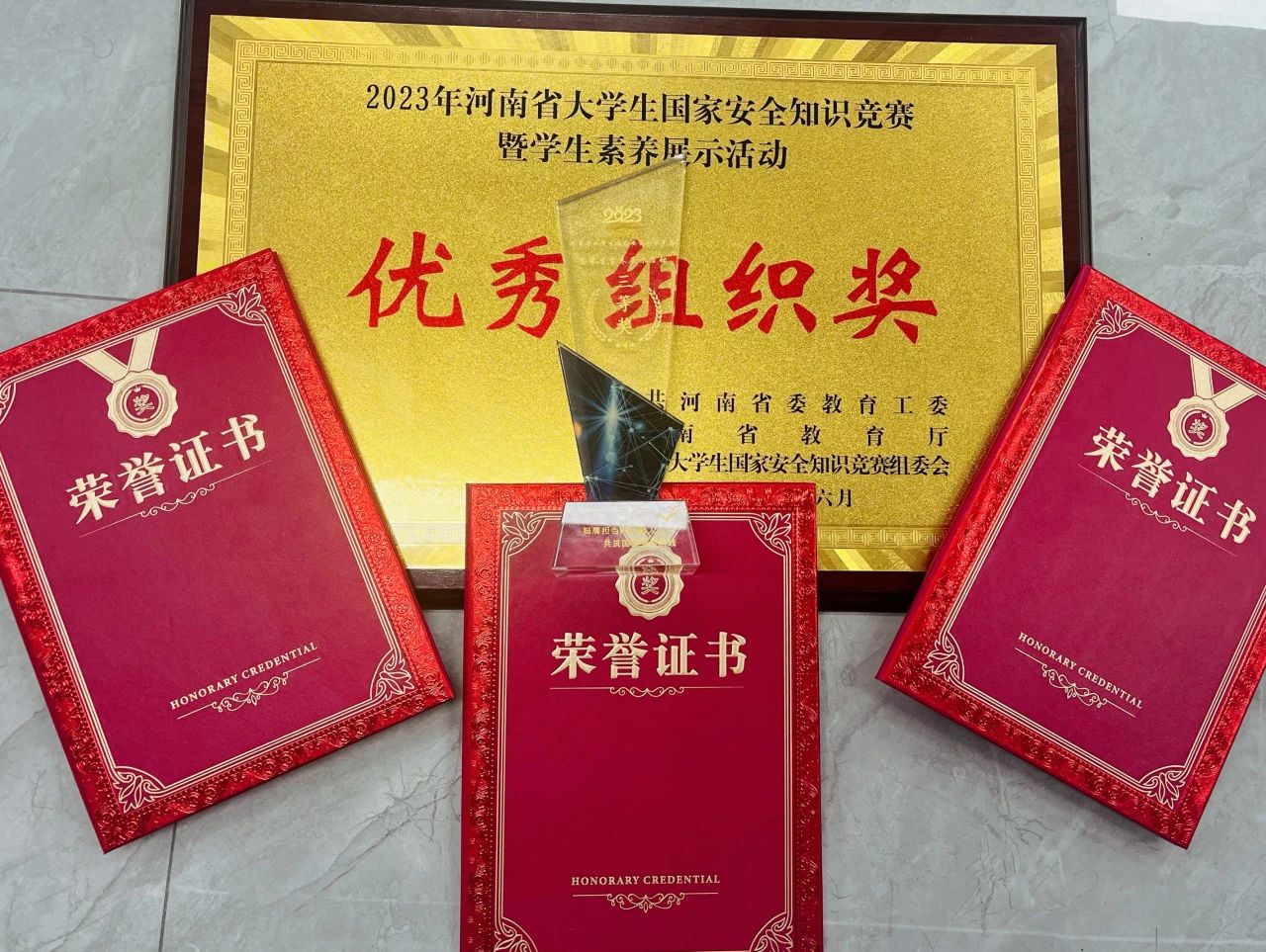 在全国第四届“诵读中国”大赛中荣获优秀奖、在河南省第四届经典诵读大赛中荣获一等奖、在河南省“喜迎二十大 欢乐进万家”十大群众文化活动中获得二等奖、在漯河市第十八届经典诵读大赛中荣获冠亚军、值得一提的是在刚刚结束的河南省第五届经典诵读大赛中我们的两个作品《我们》《青春担当》荣获一等奖,并成功入围由教育部、国家语委主办的全国总决赛。