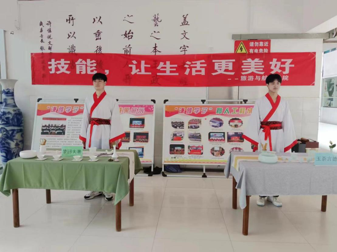 积极开展教学成果展,组织丰富多彩的校园活动。5月19日上午,公司在3号教学楼一楼大厅举行精品茶台展示,展示内容涵盖《梦回大暑》、《玉茶言德》、《红楼茶韵》、《遇见老白茶》等四个主题,期间同学们还进行了茶艺表演。